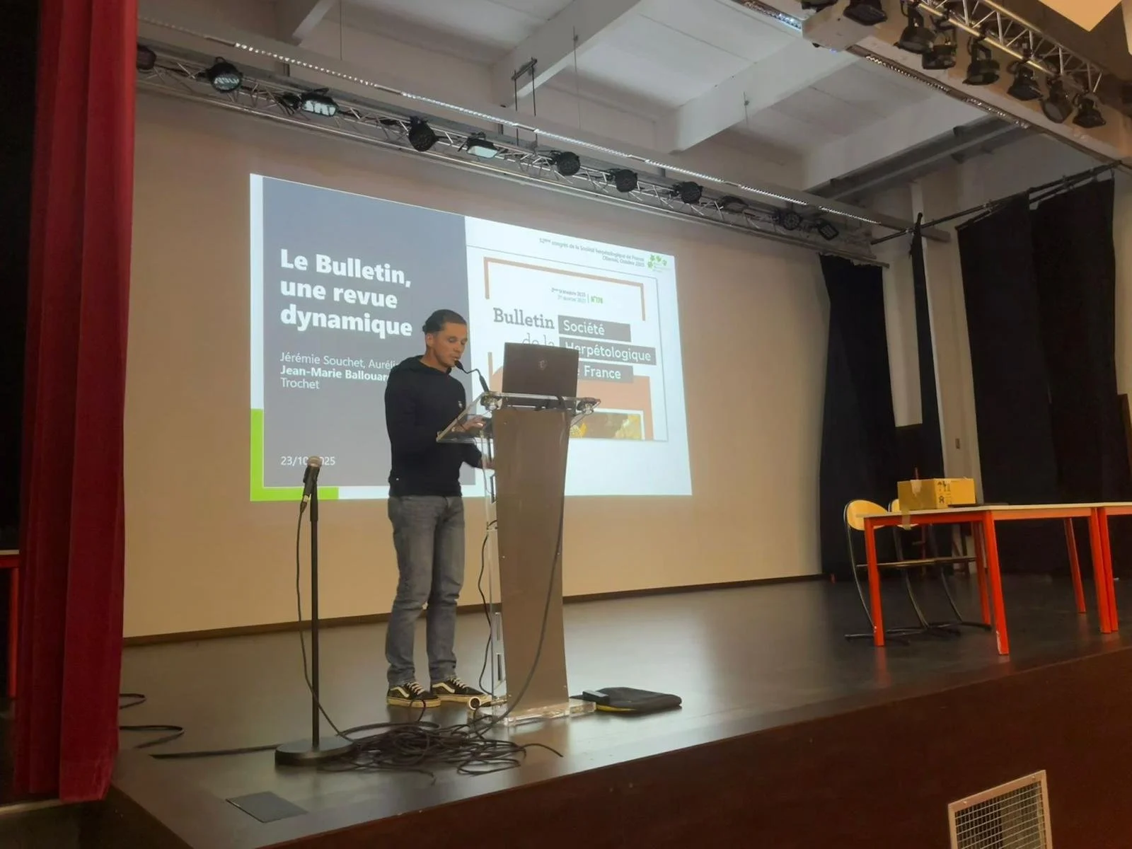 Grâce aux deux REx et suivis que nous menons suite aux incendies (2021 et 2024) dans la Plaine des Maures, Alexia Le Floch s’est lancé au travers d’un titre évocateur « Faire ses valises ou rester ? Le dilemme des tortues d’Hermann survivantes après un incendie ». Quant à Jean-Marie Ballouard, il y a présenté "Le Bulletin de la SHF, une revue dynamique".