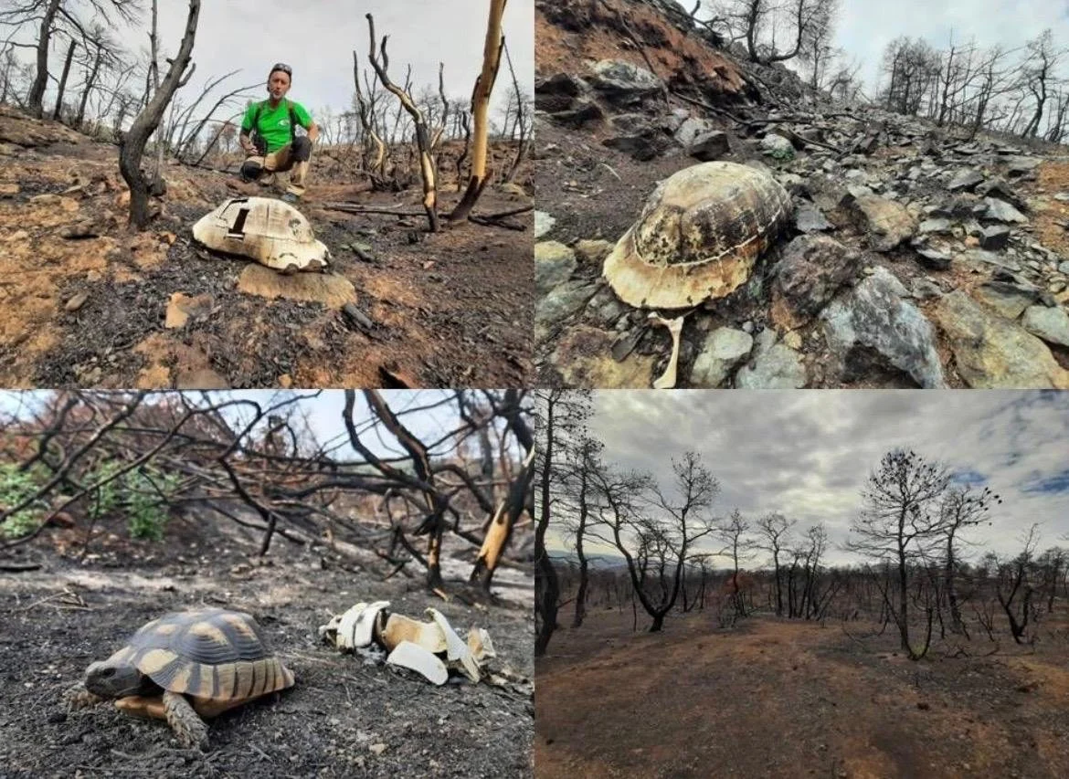 Ces animaux sédentaires et philopatriques sont extrêmement résistants, mais lents, dotés d’une très faible capacité de fuite et ont une maturité sexuelle tardive. Ils sont particulièrement vulnérables aux catastrophes telles que les incendies. Plus de 400 tortues blessées ont été récupérées par ANIMA, parmi elles on retrouve les 3 espèces de tortues présentes en Grèce : la Tortue marginée (Testudo marginata), la Tortue grecque (Testudo graeca) classée « Vulnérable » sur la Liste Rouge de l’IUCN et la Tortue d’Hermann (Testudo hermanni) classée « Quasi menacée ».
